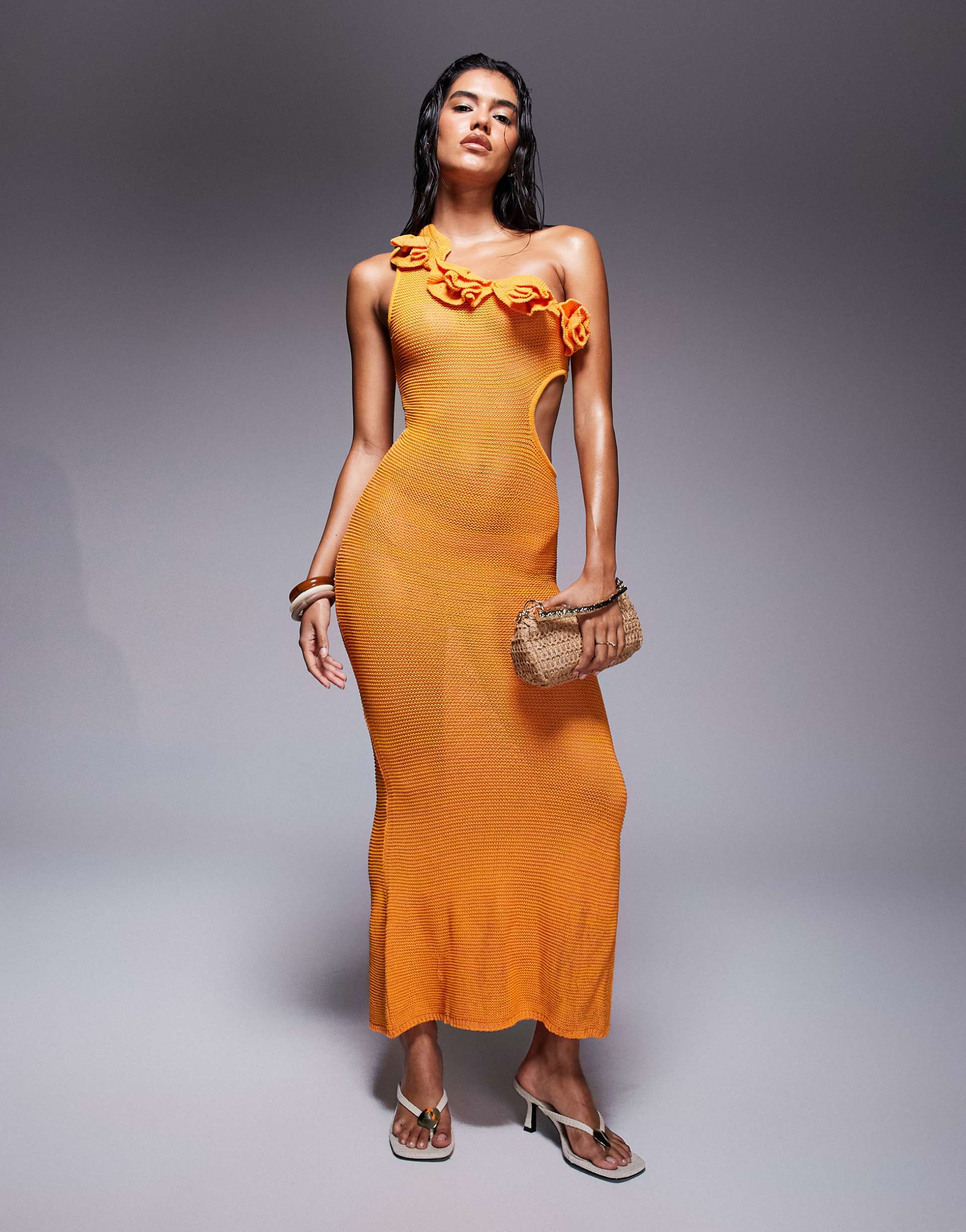 Orange One Shoulder Maxi Dress