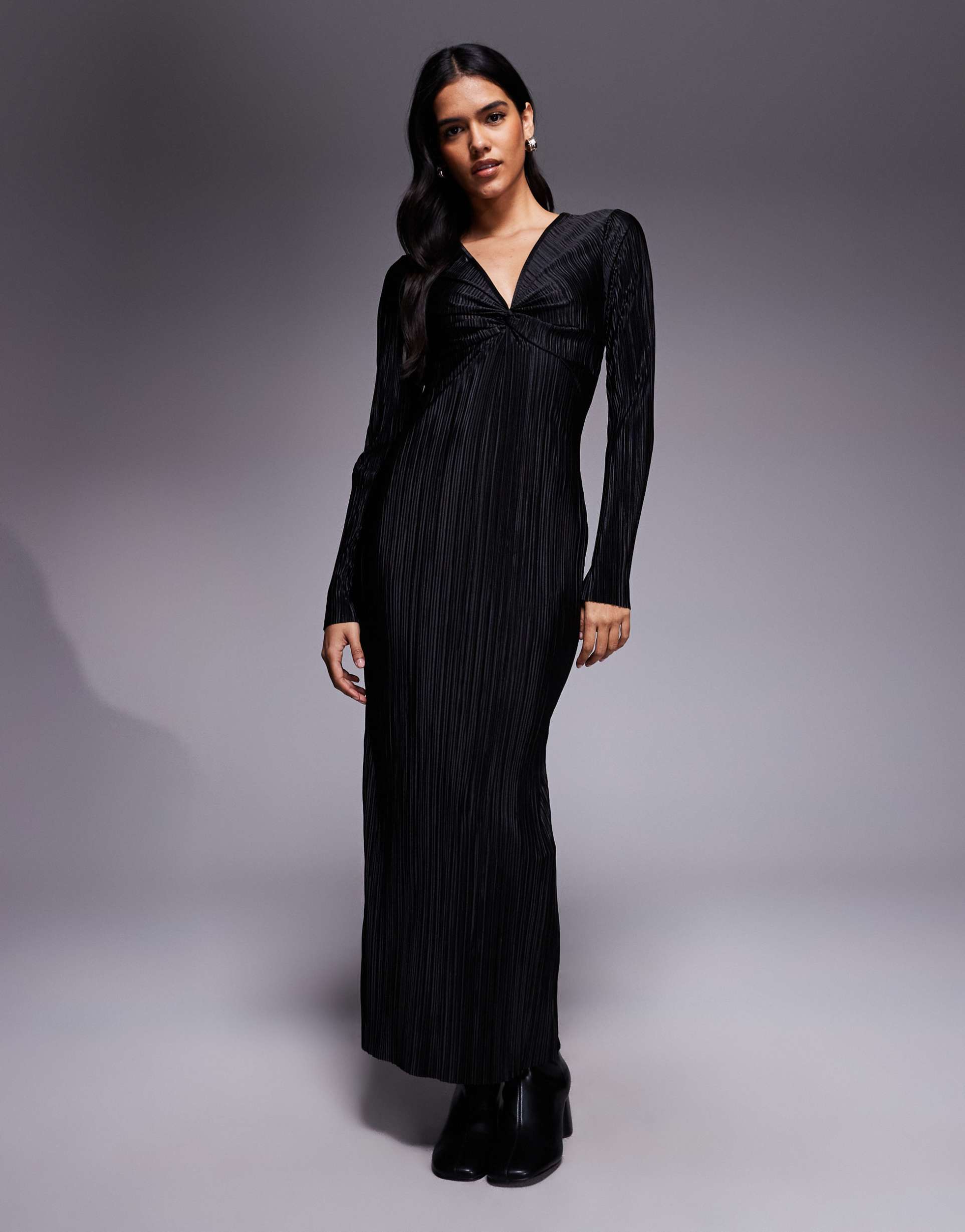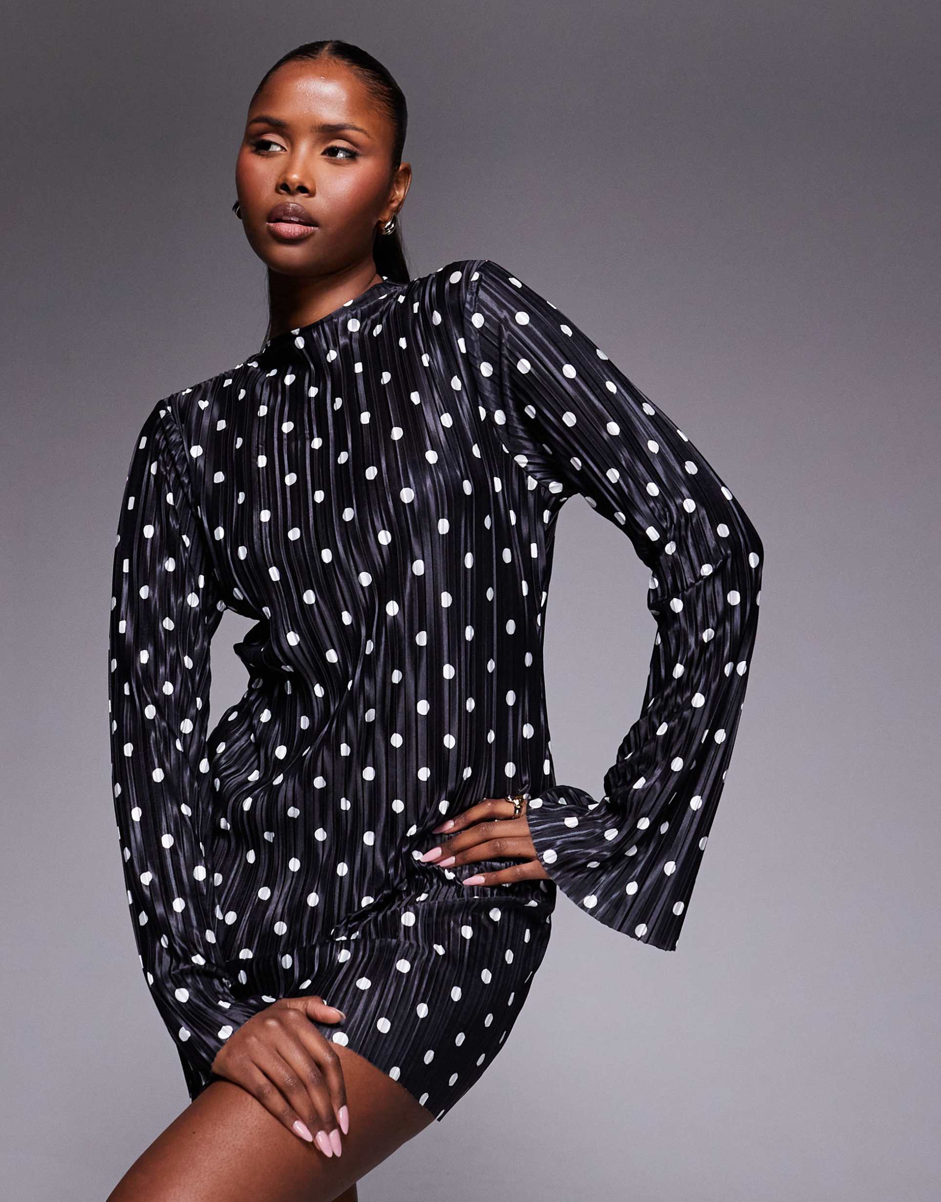Plissé Long Sleeve Dress