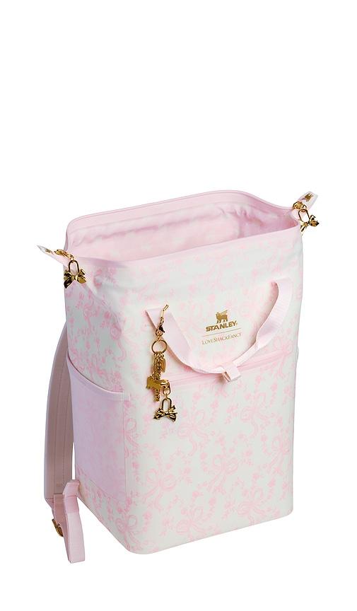 STANLEY X LOVESHACKFANCY THE ALL-DAY MADELEINE MINI COOLER BACKPACK 14QT IN PINK.