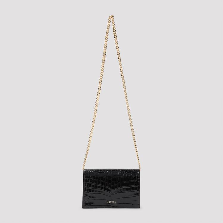 ALEXANDER MCQUEEN SMALL SKULL CLUTCH BLACK LEATHER BAG - WOMEN