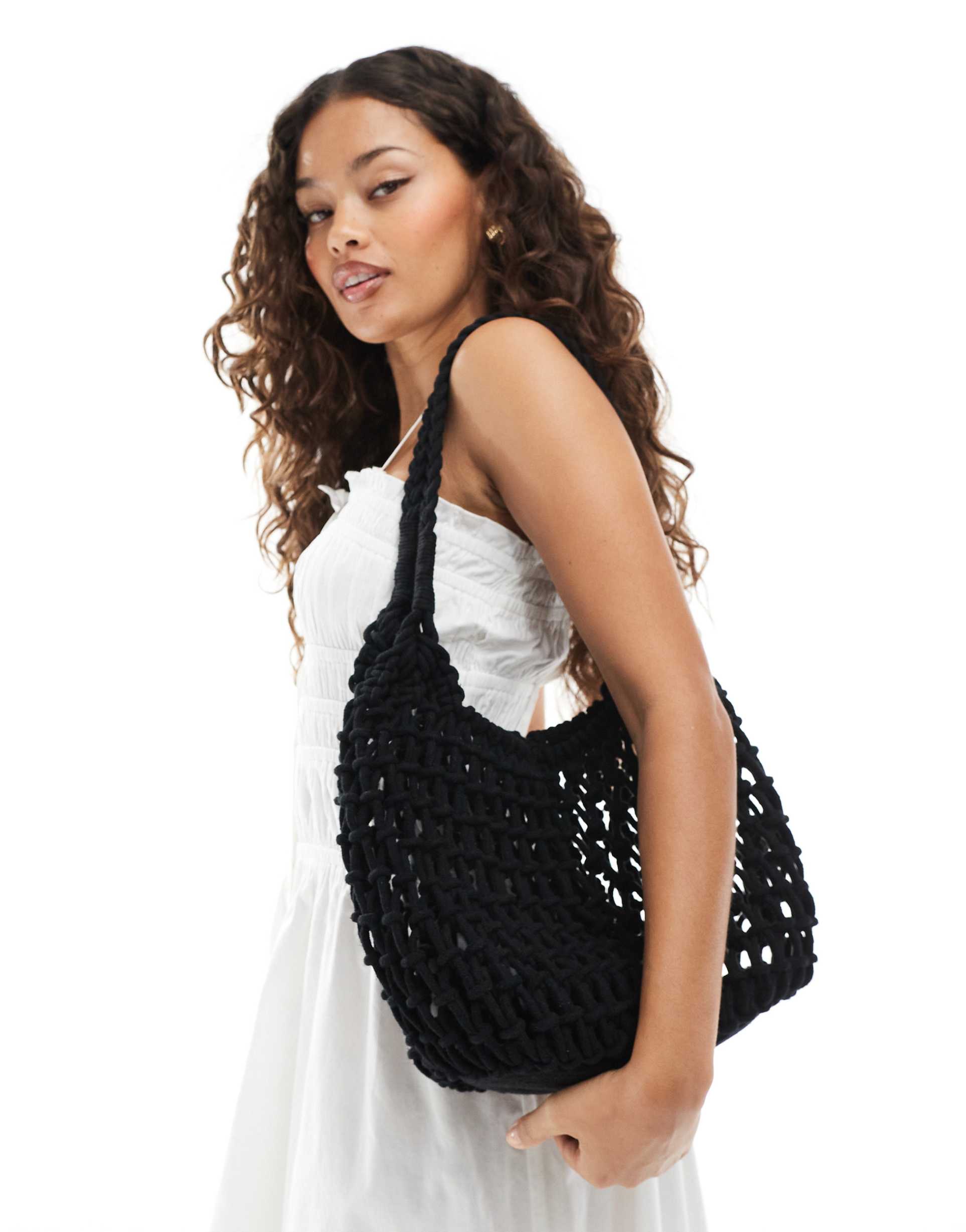 ASOS DESIGN MACRAME TOTE BAG WITH TWIST HANDLE IN BLACK