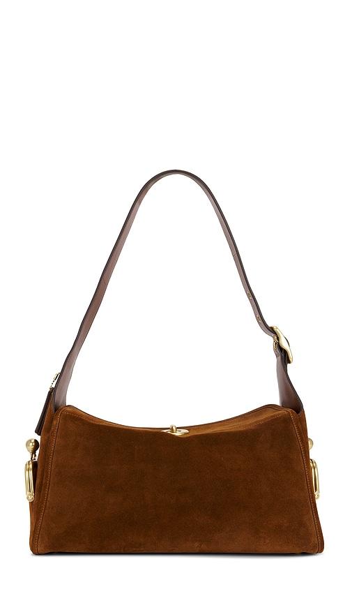 COACH THE COACH ORIGINALS SUEDE TURNLOCK HAVERSACK BAG IN BROWN.