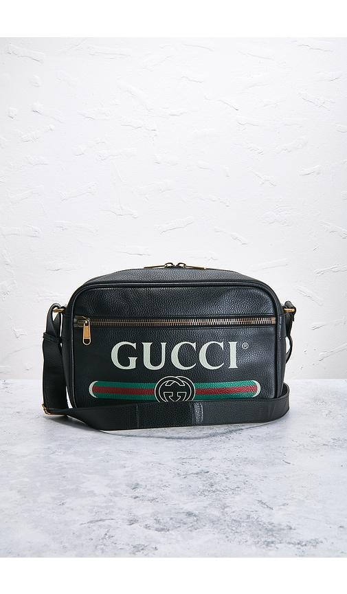 FWRD RENEW GUCCI LOGO MESSENGER BAG IN BLACK.