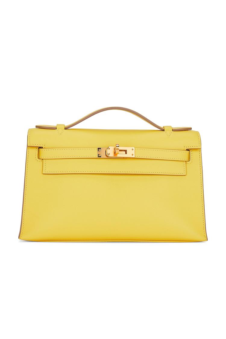 Yellow calfskin exterior and lining with gold-tone hardware