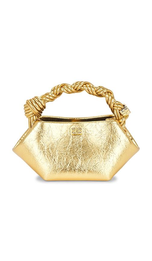 GANNI BOU MINI CRUSHED BAG IN METALLIC GOLD.