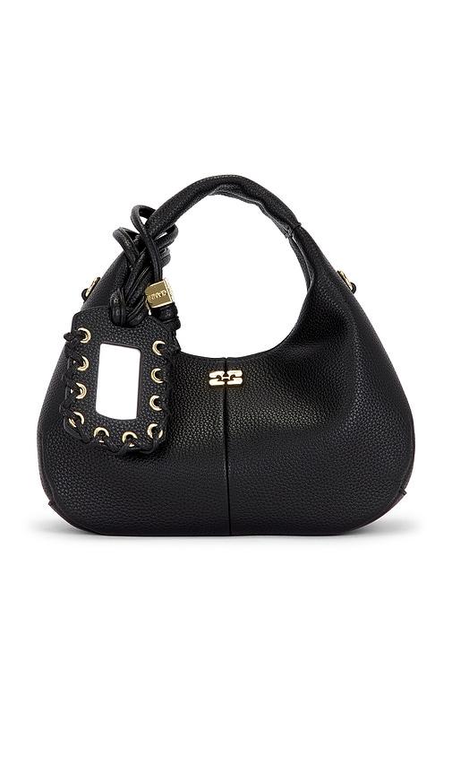 GANNI GRAINED MINI HOBO BAG IN BLACK.