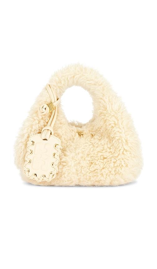 GANNI MINI FUR HOBO BAG IN CREAM.