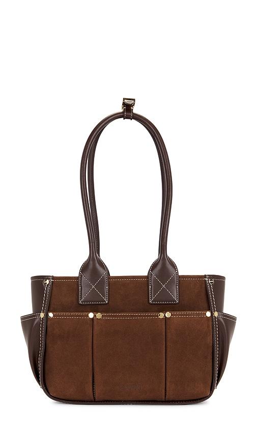 GANNI POSY SMALL RECYCLED SUEDE BAG IN BROWN.