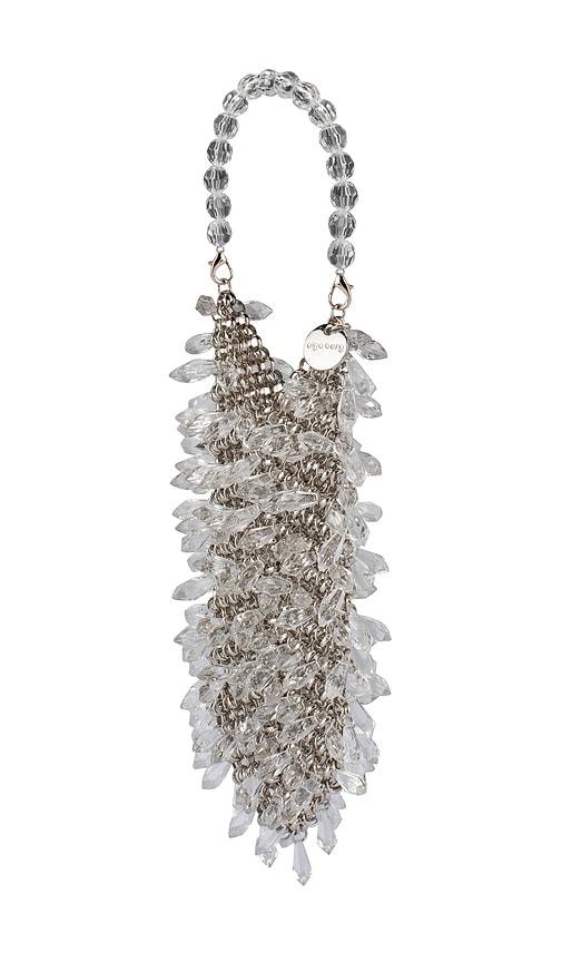 OLGA BERG FLORENCE CHAINMAIL BAG IN METALLIC SILVER.