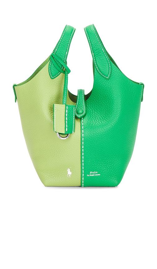 POLO RALPH LAUREN SHINY DRUM PEBBLE SMALL CROSSBODY BAG IN GREEN.