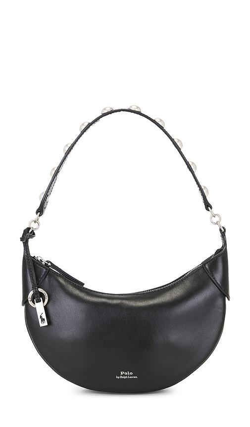 POLO RALPH LAUREN SPORT CALF STUDDED CROSSBODY BAG SMALL IN BLACK.