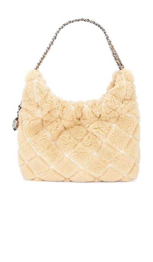 TORY BURCH FLEMING SHEARLING MINI HOBO BAG IN IVORY.