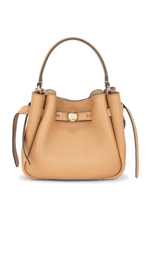 TORY BURCH ROMY MINI BUCKET BAG IN NUDE.