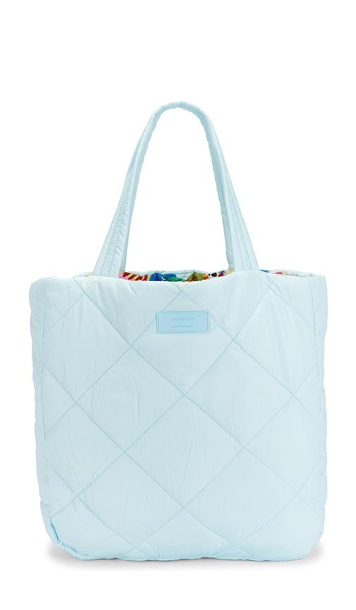 WHITESPACE X FARM RIO PUFFER TOTE BAG IN BABY BLUE.