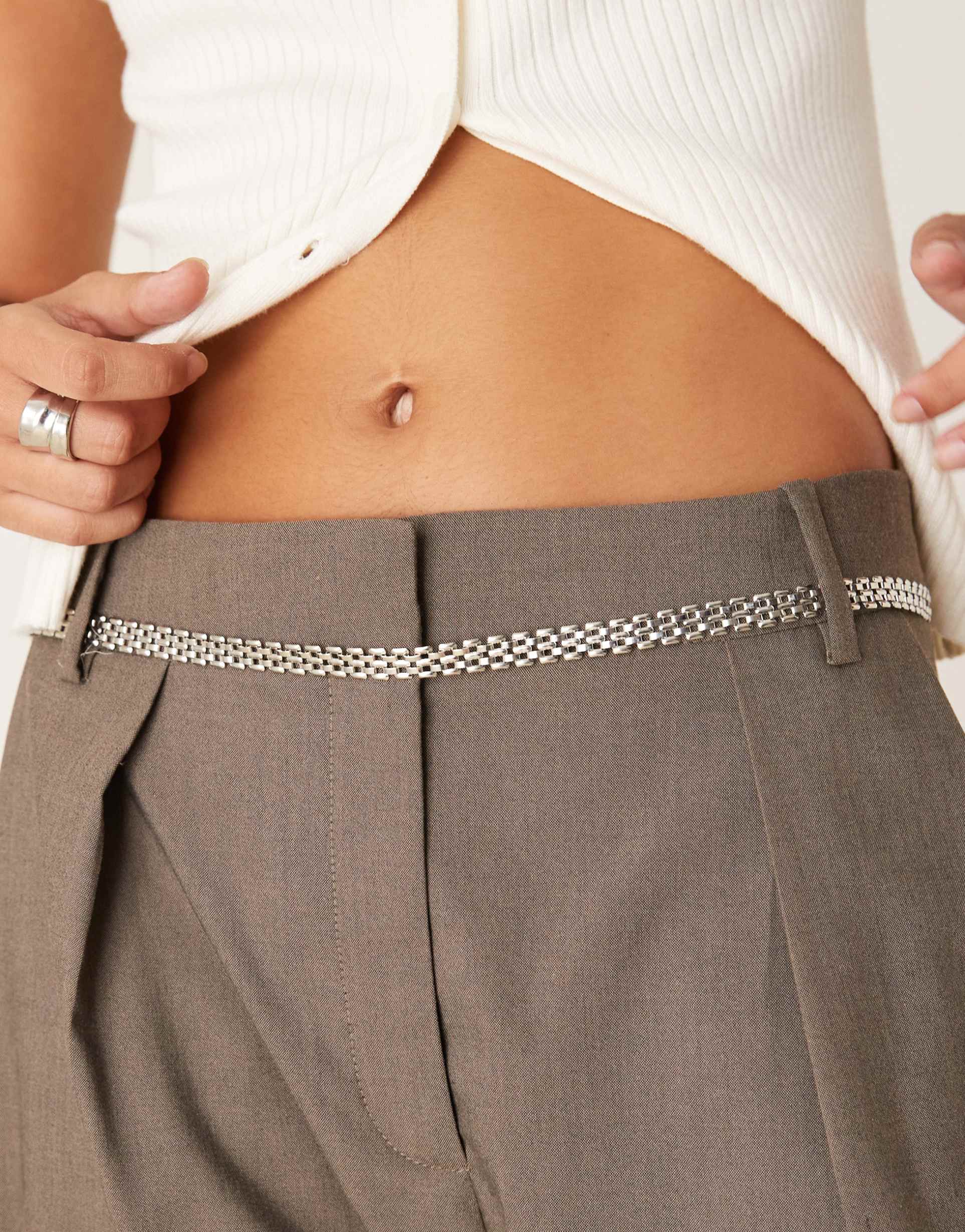 DESIGNB LONDON CHAIN BELT IN SILVER TONE