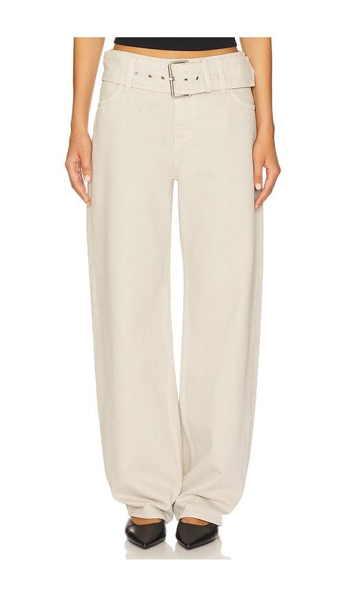 GRLFRND ELIZA BELTED BOYFRIEND IN BEIGE.