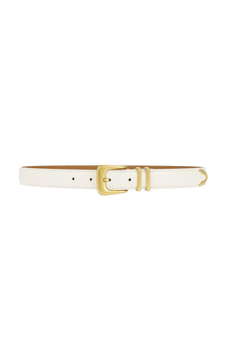 Embrace clean, carefree polish with this white faux-leather Western belt. A crisp 3 cm strap sits beneath a bronze-tone buckle, delivering a timeless cinch for denim or a sun-kissed dress. The minimalist silhouette keeps the focus on the hardware’s warm glow, echoing classic Western influence while staying versatile for casual days or vacations. Adjustable from about 70 to 81 cm, it’s easy to tailor for mid-rise jeans, a flowy tunic, or a crisp white dress. Pair with gold accessories for cohesive shine, or let the belt stand solo as a quiet statement of effortless style.