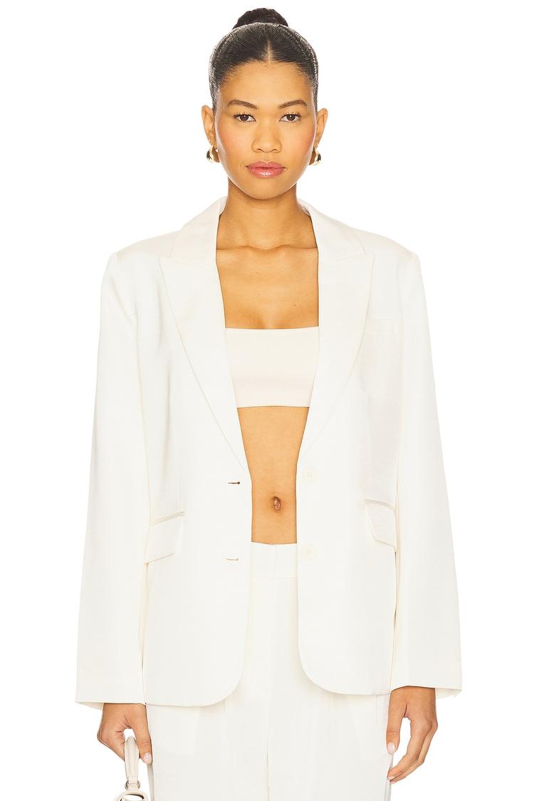 This Camille Satin Blazer features a tailored, single-breasted silhouette with a hip-length cut and long regular sleeves. Crafted from midweight satin polyester with a matching polyester lining, it showcases classic notched lapels and padded shoulders for structure. The blazer fastens with a front button closure and includes front flap pockets, blending elegance with functionality. Its pristine white solid color makes it versatile for workwear, business casual events, or cocktail occasions, offering a sophisticated and polished look suitable for autumn, winter, and spring seasons.