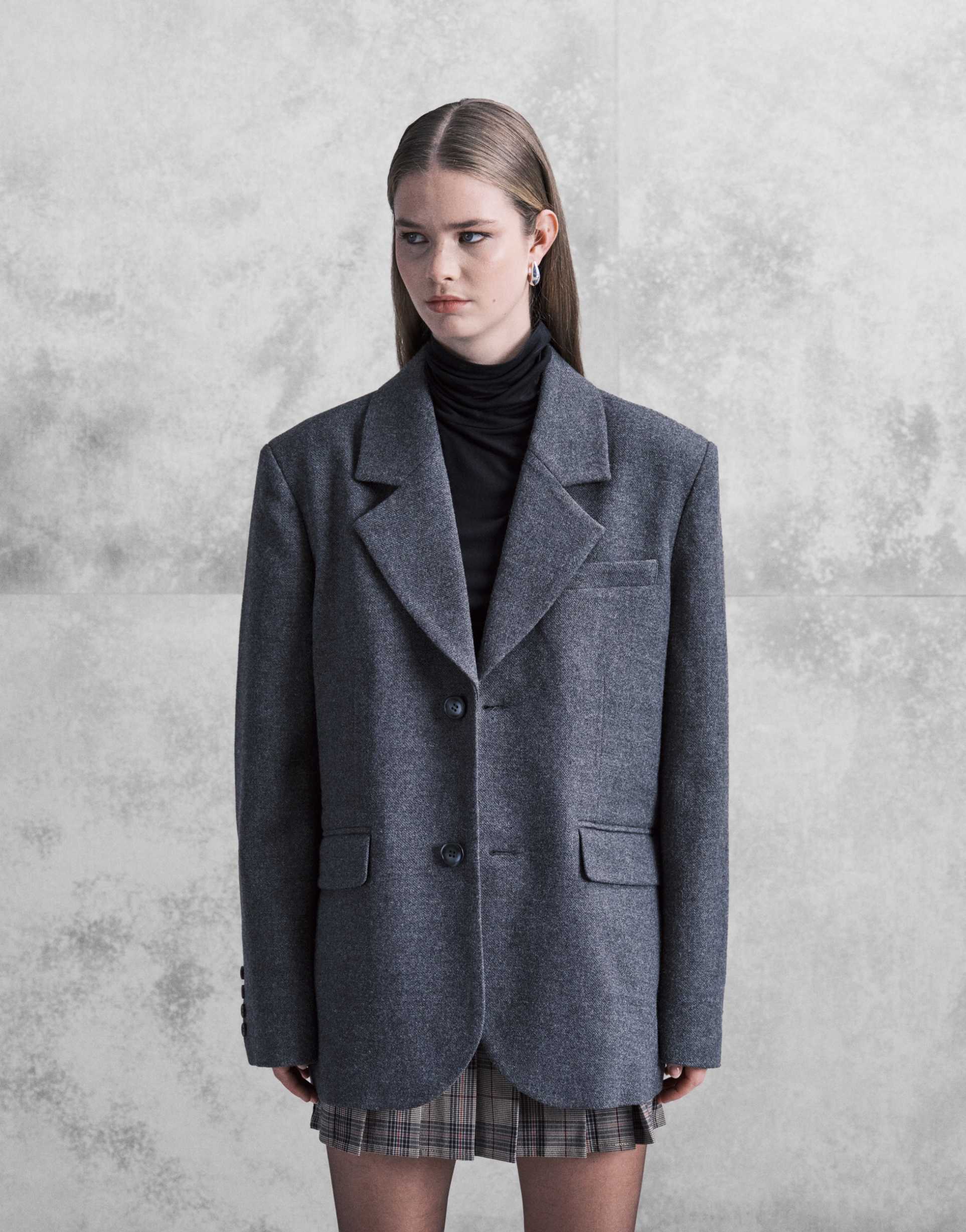 ARIA COVE OVERSIZED WOOL LOOK DROPPED SHOULDER BLAZER IN CHARCOAL