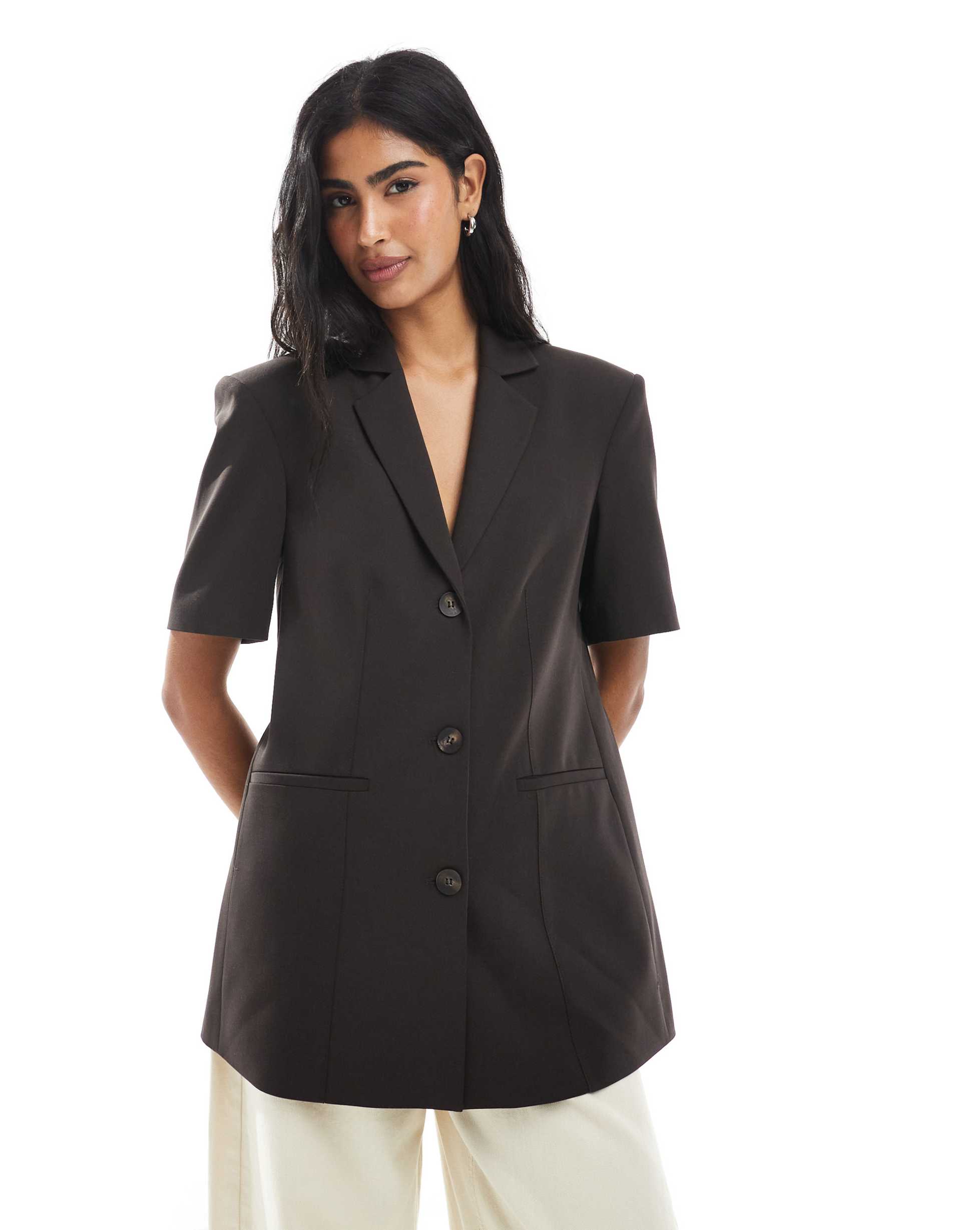 ASOS DESIGN BOXY OVERSIZED SHORT SLEEVE BLAZER IN CHOCOLATE
