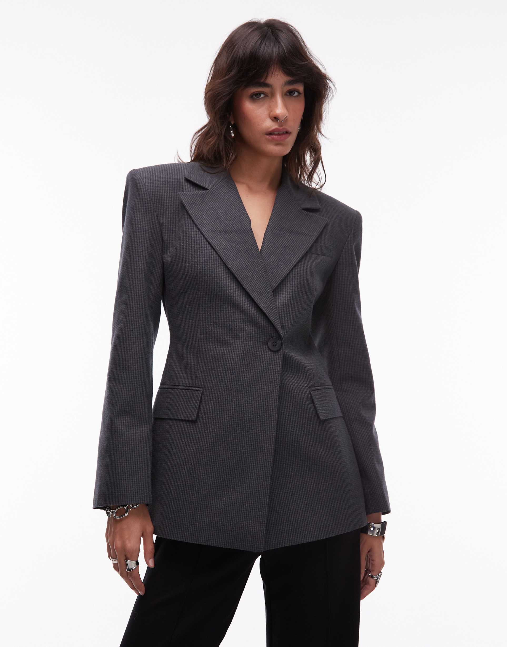 ASOS DESIGN CINCH HIGH BREAK POINT BLAZER IN GRAY PLAID