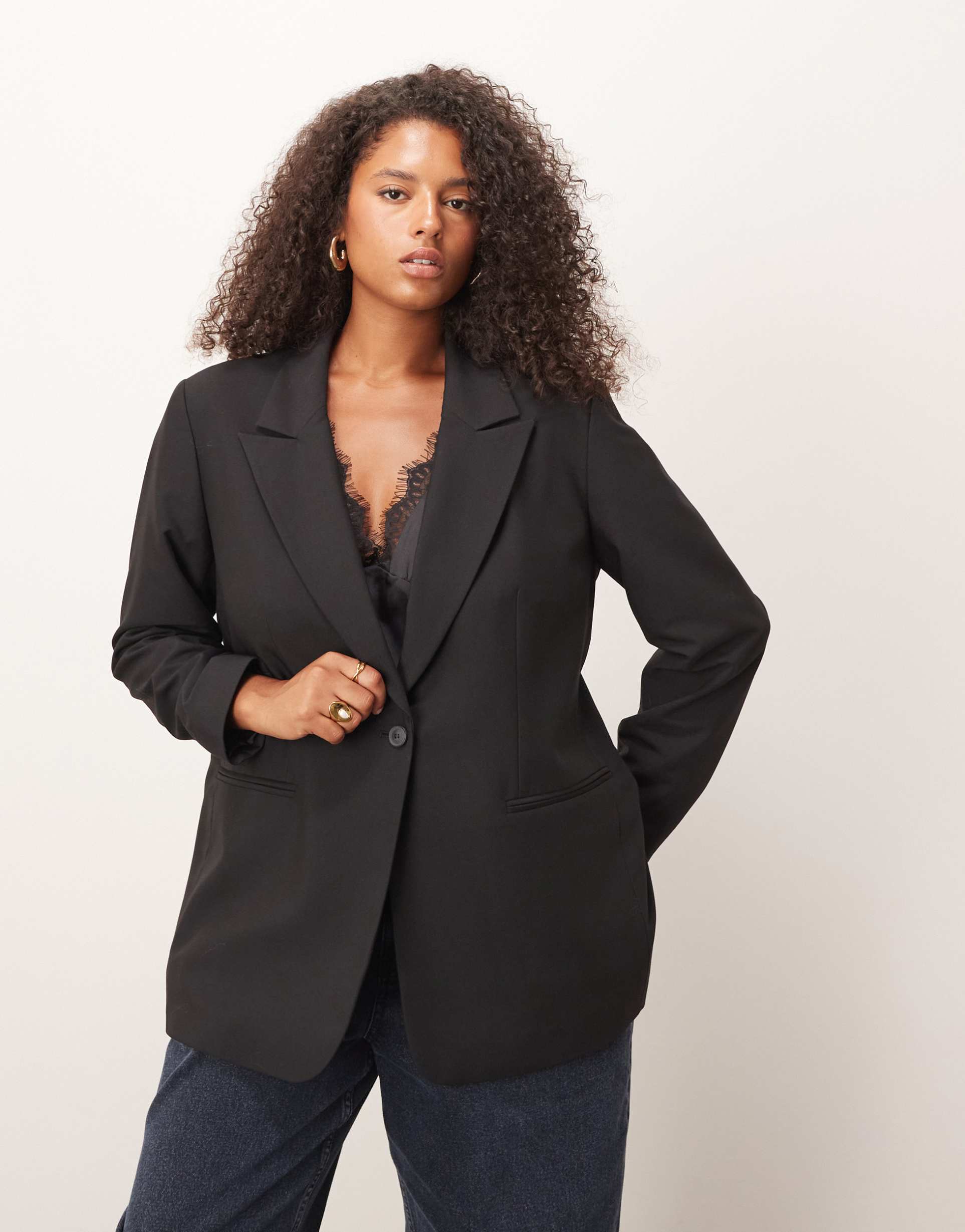 ASOS DESIGN CURVE TAILORED RELAXED BLAZER IN BLACK
