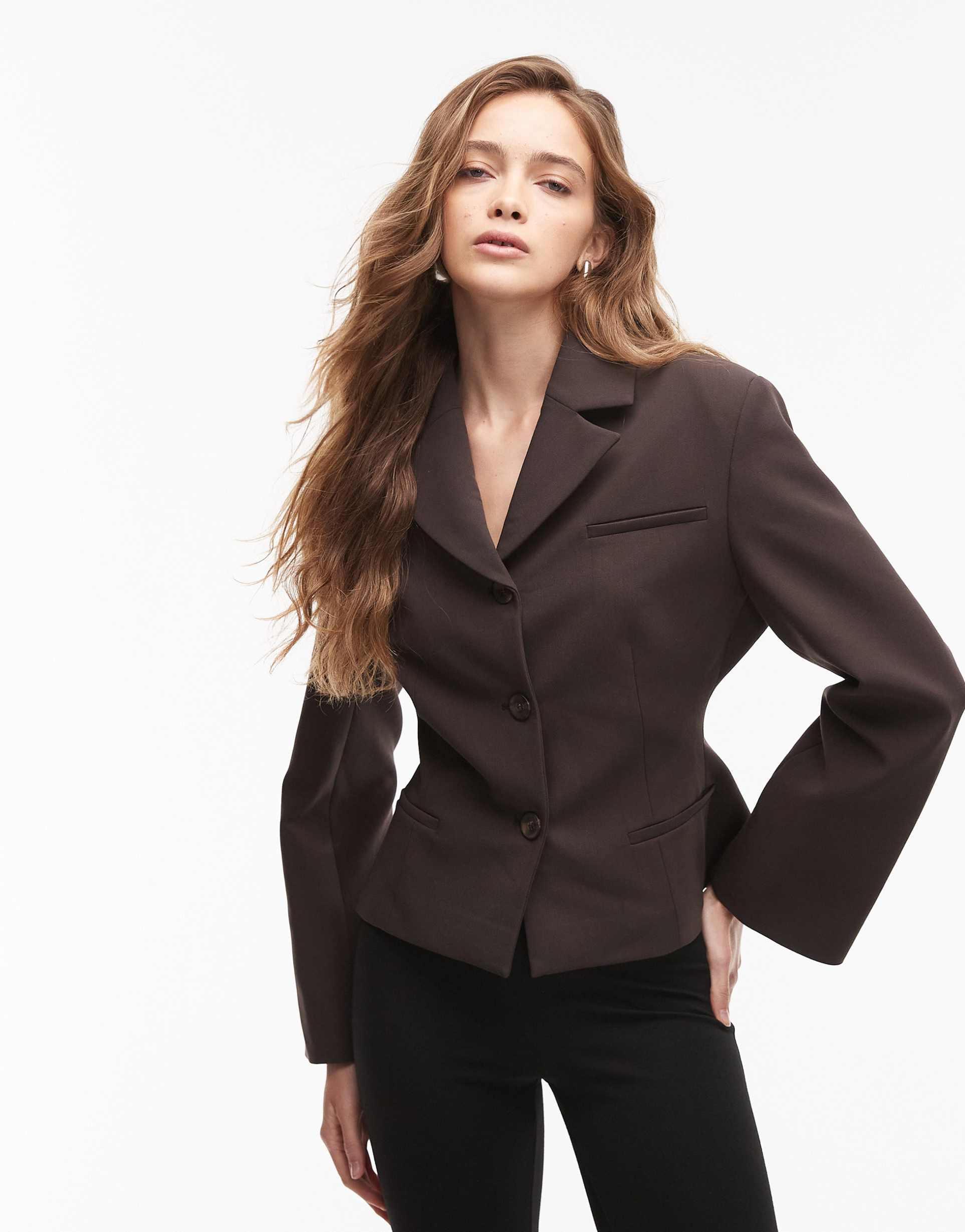 structured brown blazer with padded shoulders