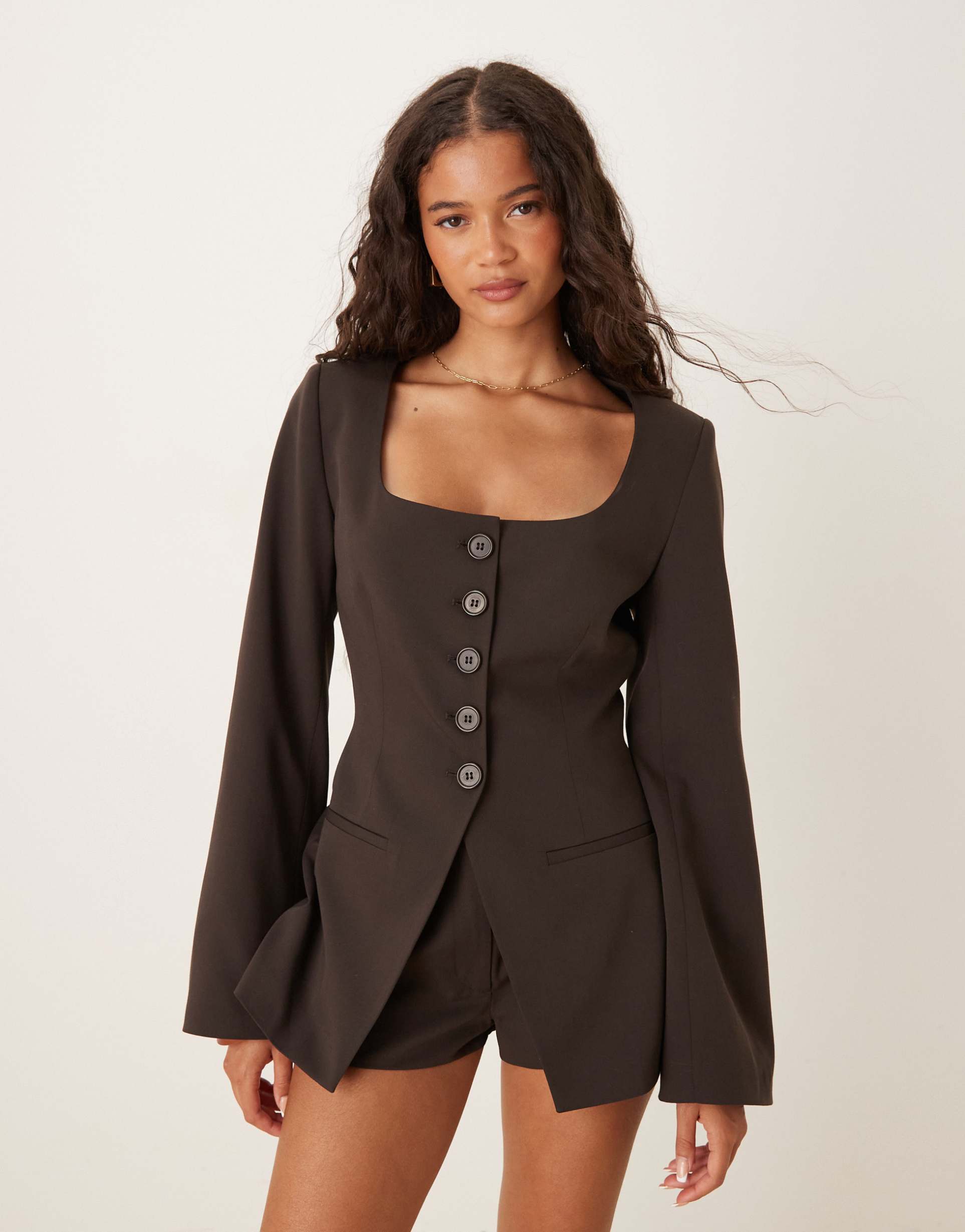 ASOS DESIGN SCOOP NECKLINE CINCHED BLAZER IN CHOCOLATE