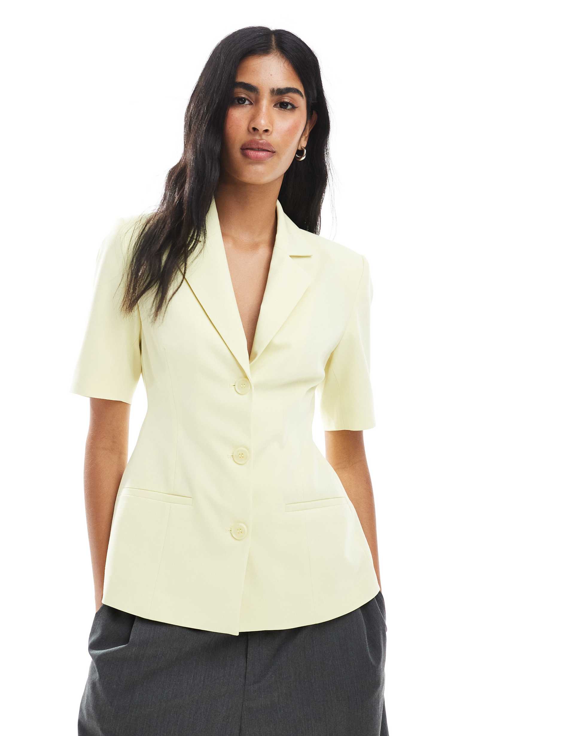 ASOS DESIGN SHORT SLEEVE CINCH BLAZER IN LEMON
