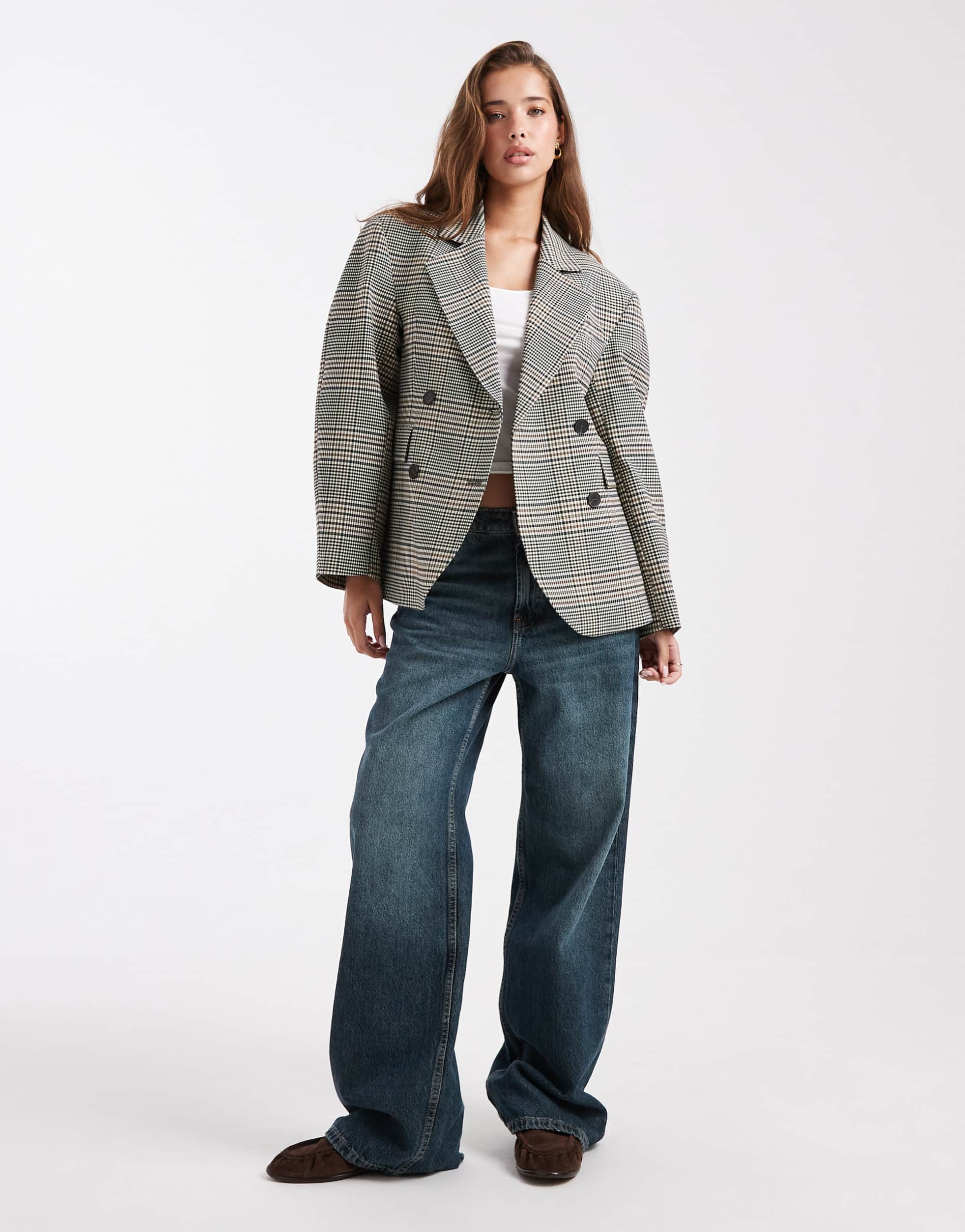 ASOS DESIGN TAILORED COCOON SLEEVES DOUBLE BREASTED BLAZER IN PLAID
