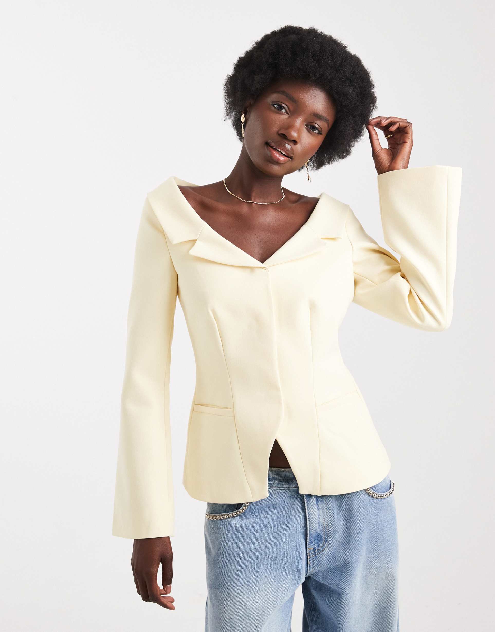 ASOS DESIGN TAILORED OFF-SHOULDER BLAZER IN BUTTERMILK