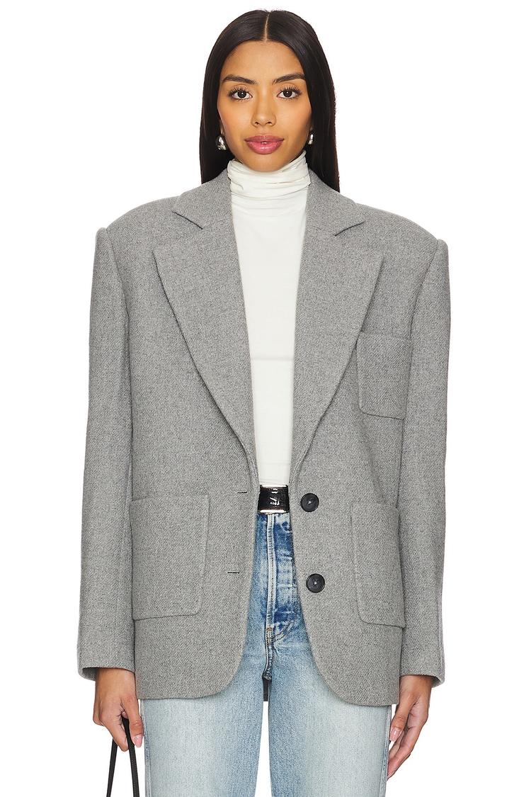 This single-breasted blazer in a classic gray hue features a relaxed fit and hip-length silhouette, perfect for layering over workwear and business casual outfits. Crafted from a heavyweight wool blend with polyester lining, it boasts padded shoulders that enhance its structured shape. The notched lapel collar and long regular sleeves add timeless sophistication, while front button closure and slip pockets provide practical detailing. Ideal for autumn through spring, this blazer balances minimalist style with professional polish, making it a versatile choice for conferences and office settings.