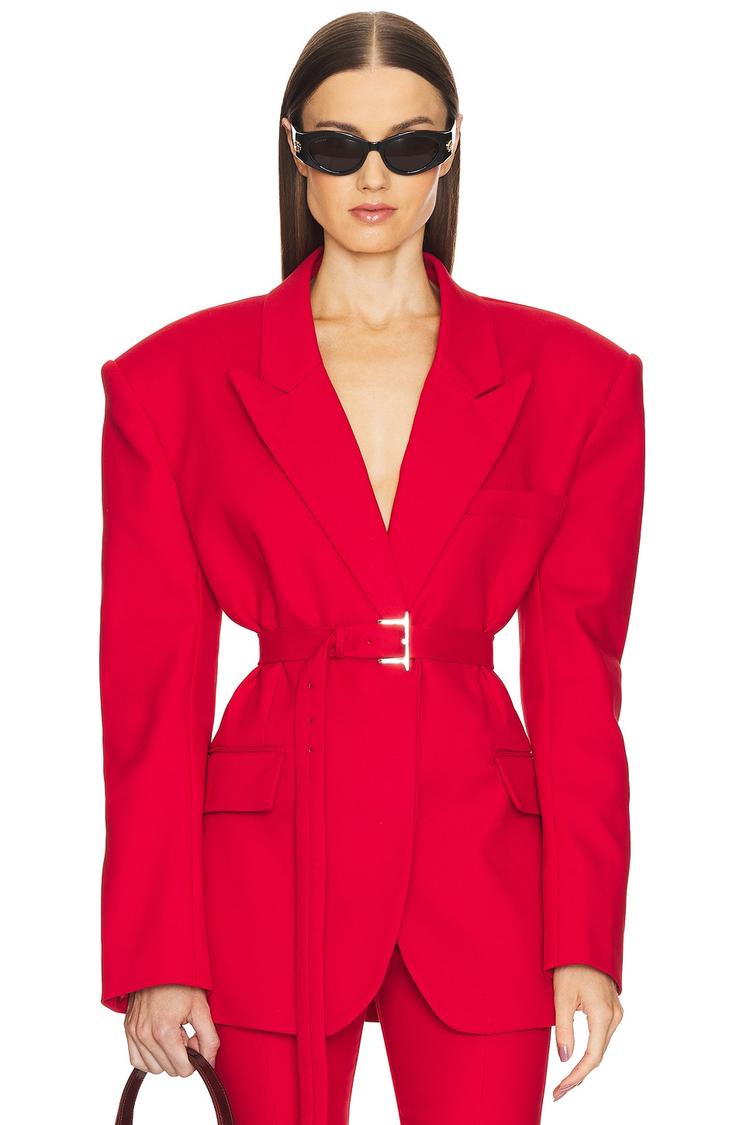 red blazer with belt