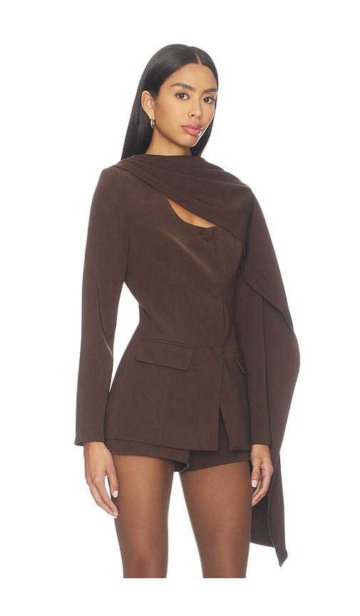 LINE & DOT NIMAH SCARF BLAZER IN BROWN.