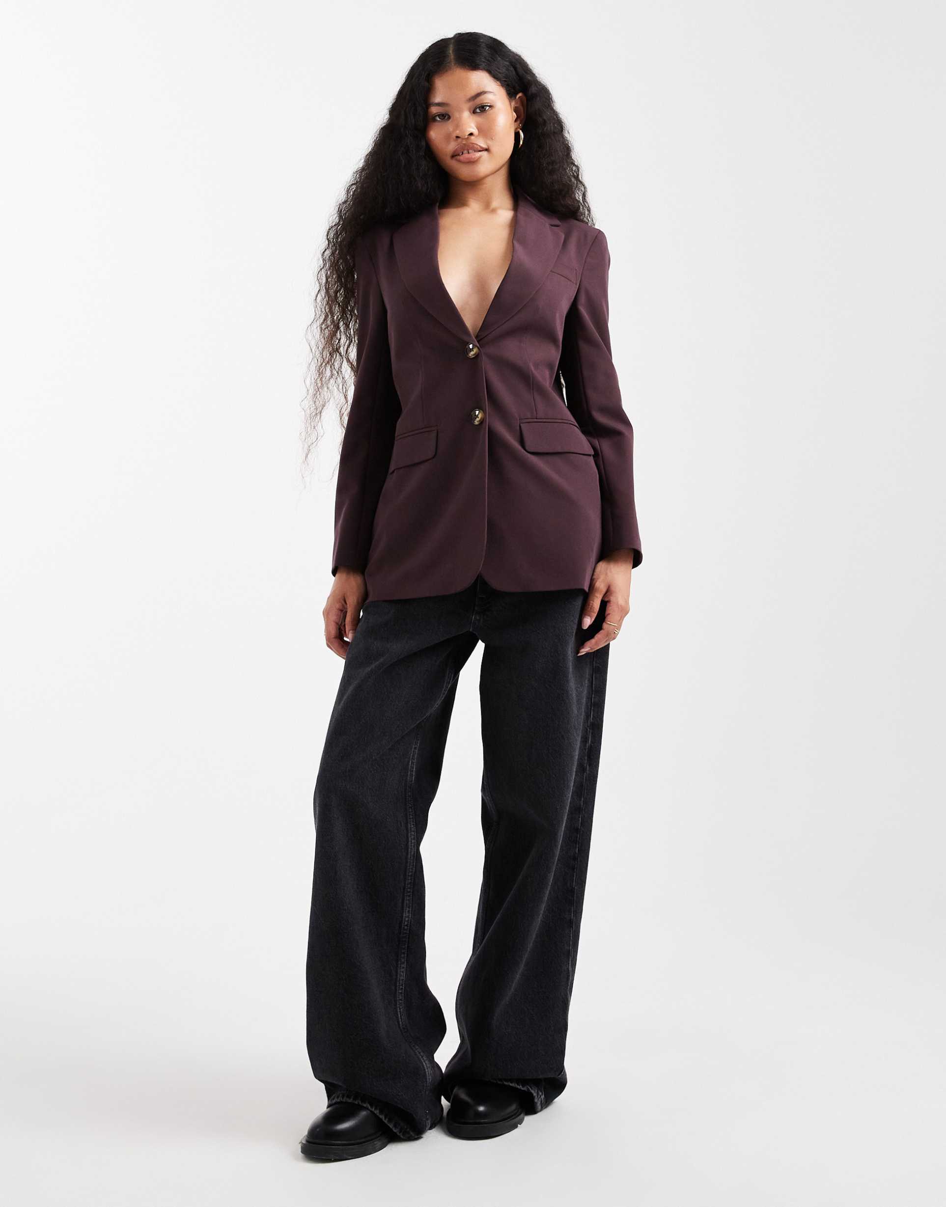 MISS SELFRIDGE PETITE OVERSIZED BLAZER IN DEEP PLUM