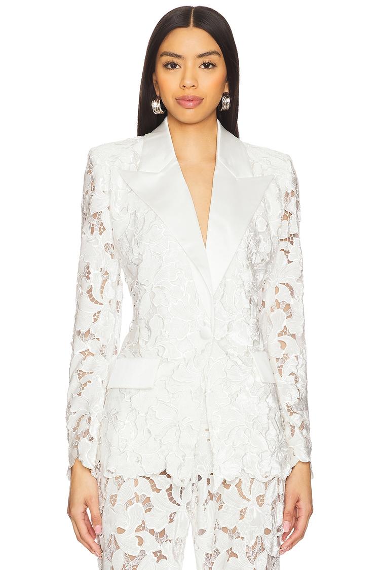 This elegant single-breasted blazer features a fitted silhouette and hip-length cut, crafted from midweight floral lace fabric in pristine white. Designed with classic lapels and long regular sleeves, it includes padded shoulders for a structured look and front button closure for a refined finish. Fully lined with nylon for comfort, this blazer is perfect for formal occasions, cocktail parties, and night outs, combining timeless style with delicate lace texture to elevate any outfit.