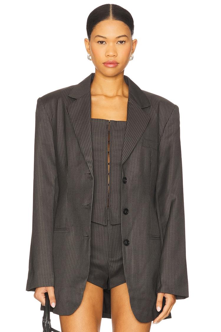 This single-breasted pinstriped blazer features a relaxed fit and hip-length cut, crafted from a midweight suiting fabric blend of polyester, viscose, and wool. The classic notch lapel collar complements the long regular sleeves and structured padded shoulders, adding subtle sophistication. Fully lined in polyester, it offers a smooth finish and professional polish. Perfect for workwear, business casual, and conference settings, this blazer balances minimalist style with timeless tailoring for a versatile wardrobe staple.