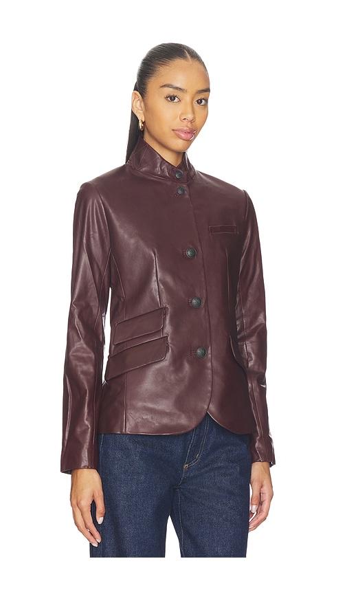 RAG & BONE SLADE LEATHER BLAZER IN BURGUNDY.