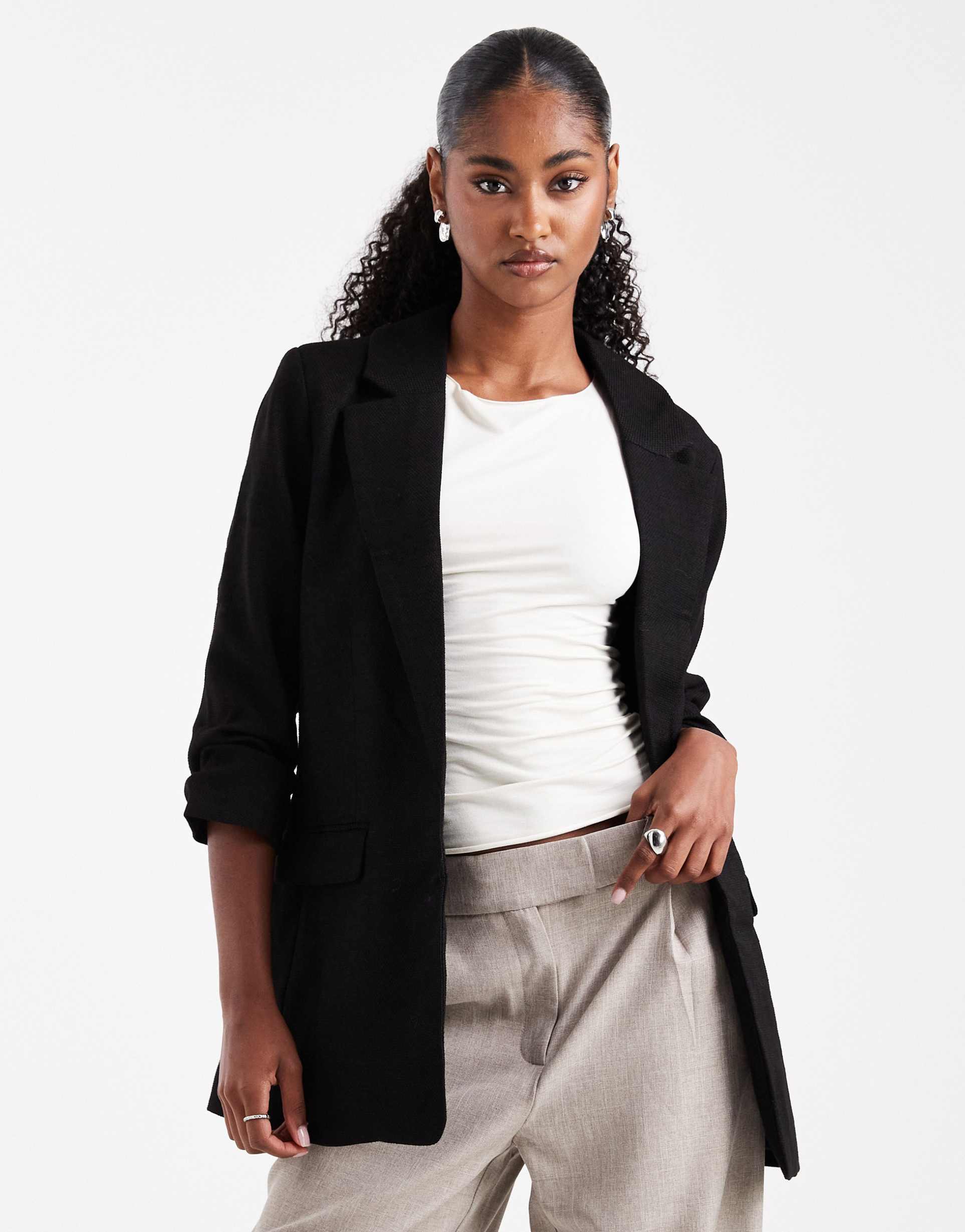 black ruched sleeve blazer