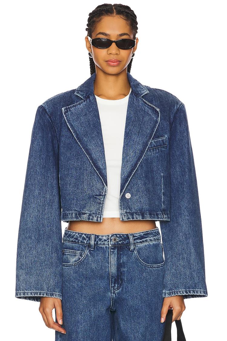 cropped denim blazer jacket