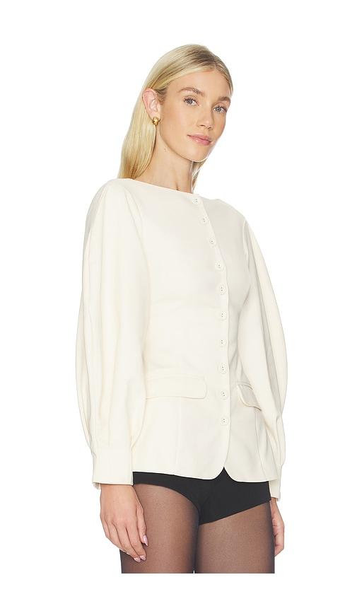 WEWOREWHAT COCOON SLEEVE PEPLUM BLAZER IN IVORY.