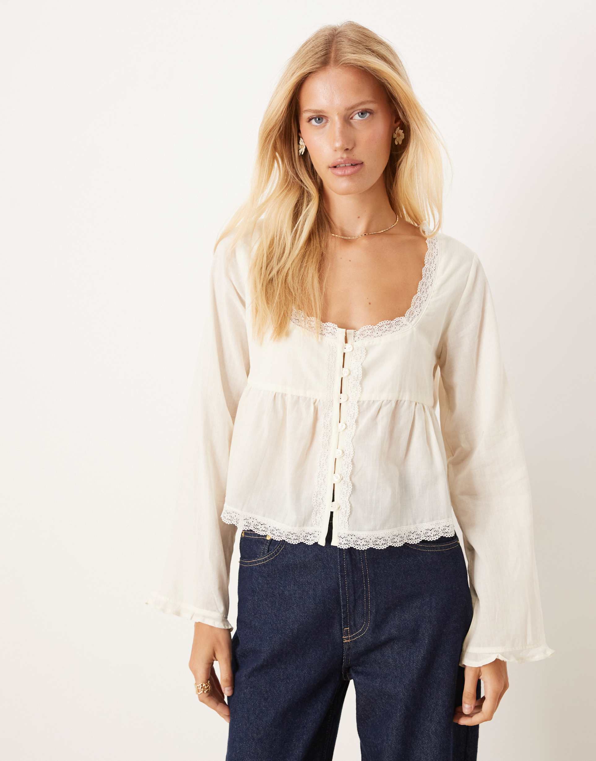 ASOS DESIGN LACE TRIM BABYDOLL BLOUSE IN ECRU