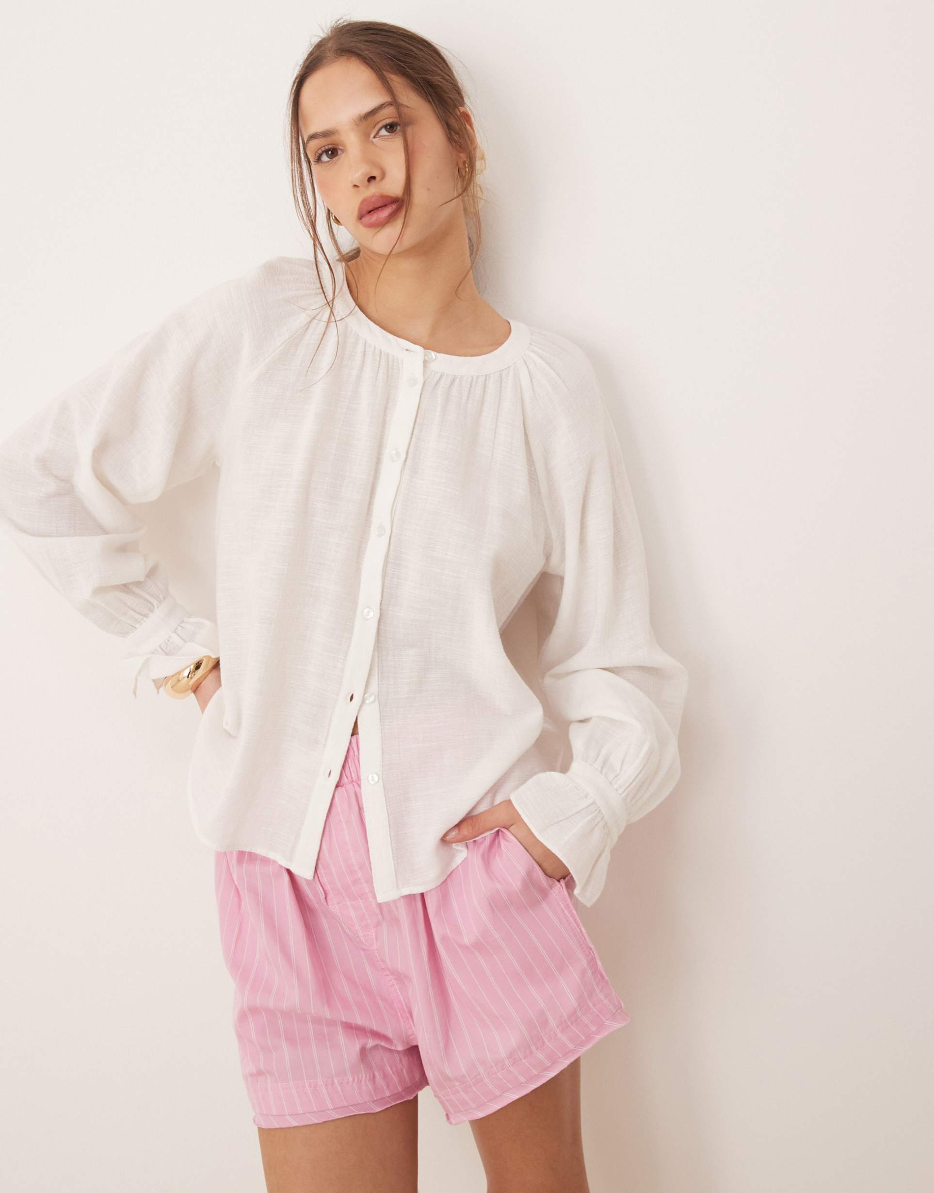 AWARE BOHO BUTTON DOWN BLOUSE IN WHITE