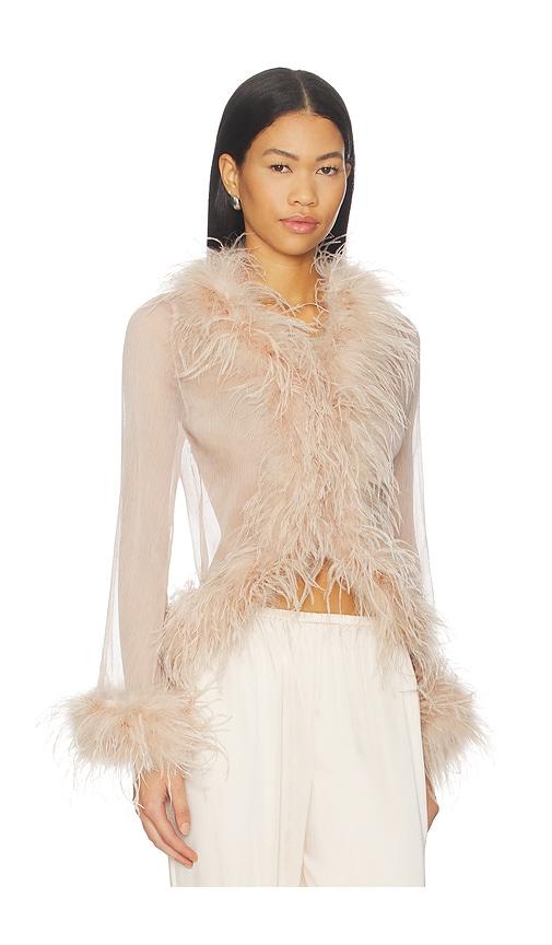 BUBISH GIGI SHEER FEATHER BLOUSE IN BEIGE.