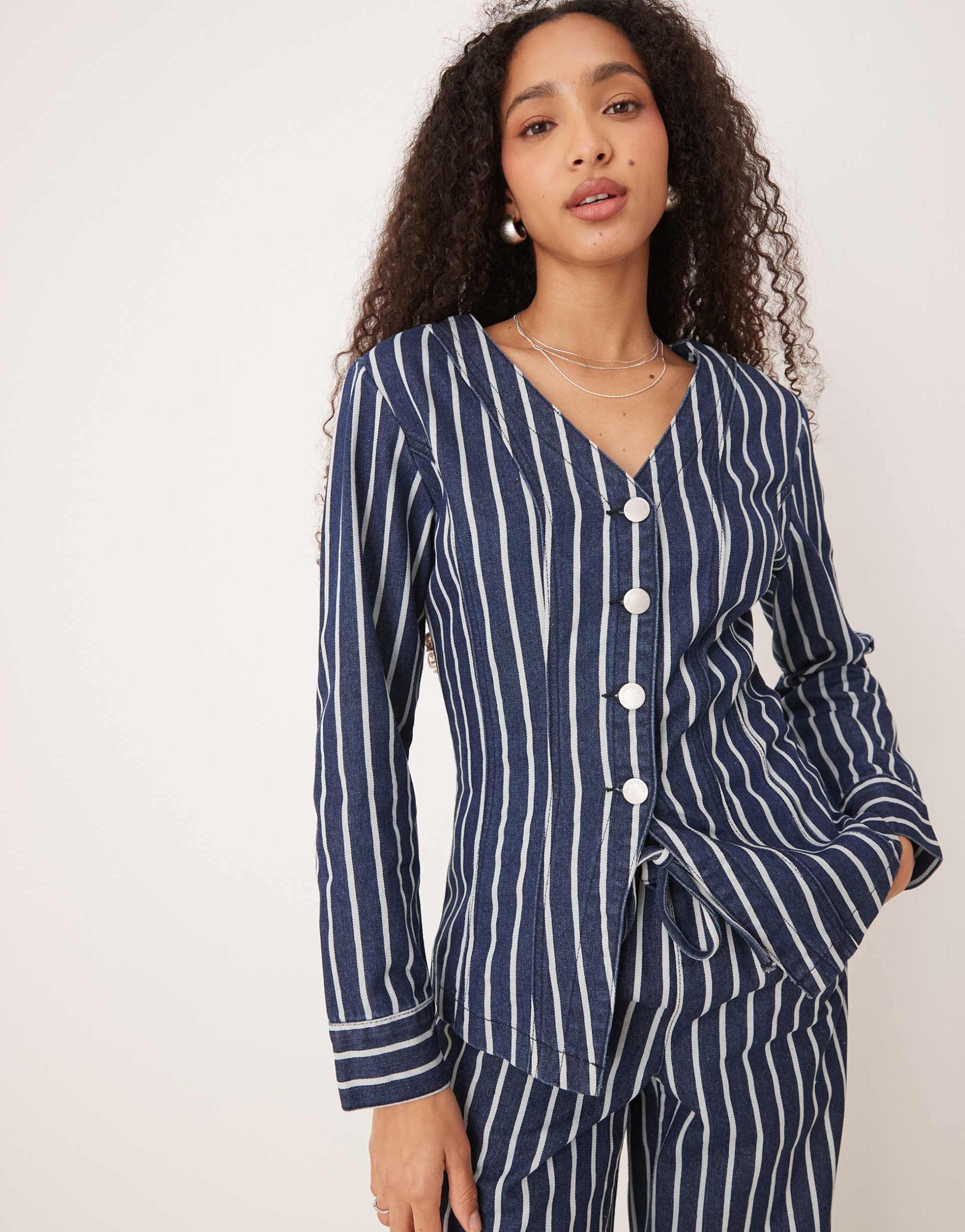 blue denim stripe top