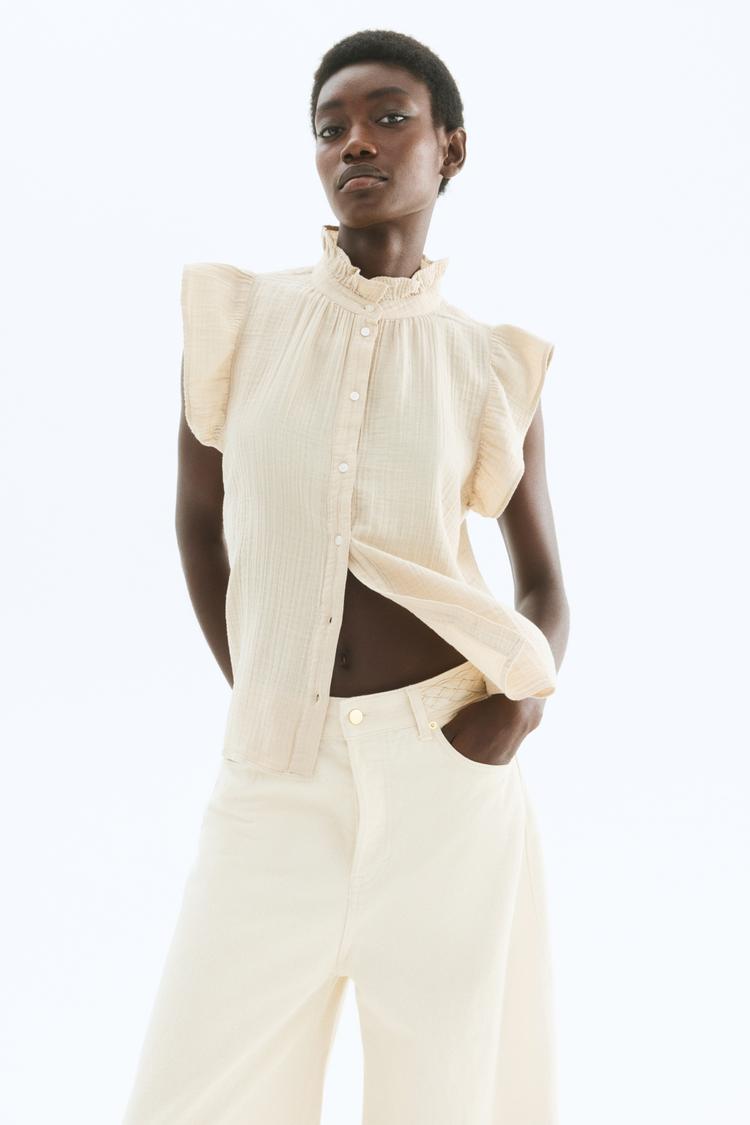 FLUTTER-SLEEVED MUSLIN BLOUSE
