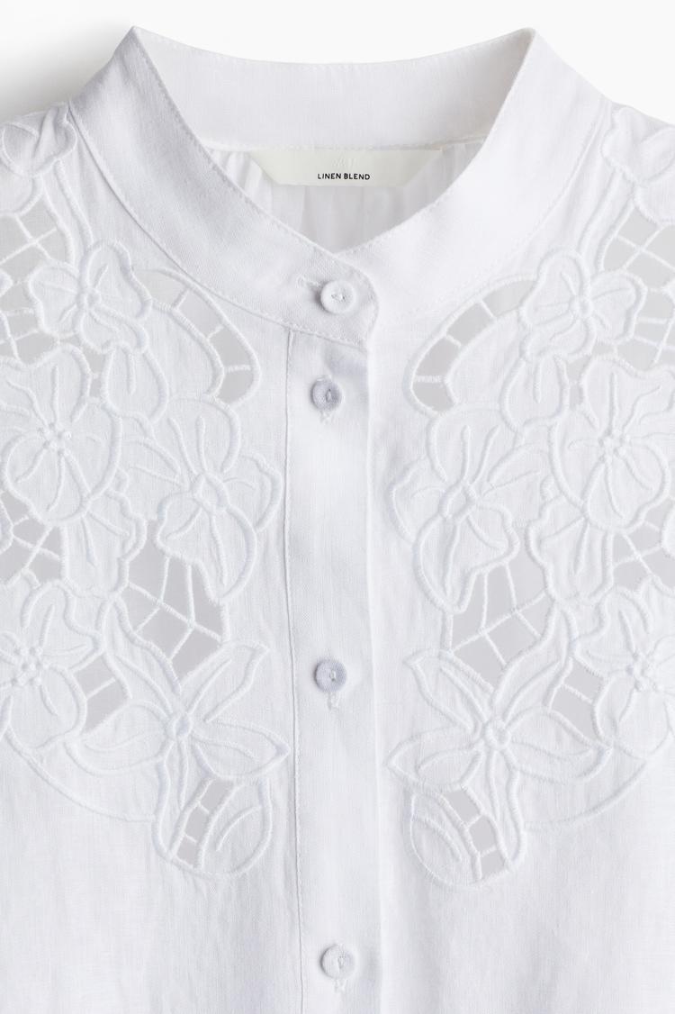 LINEN-BLEND BLOUSE WITH EYELET EMBROIDERY