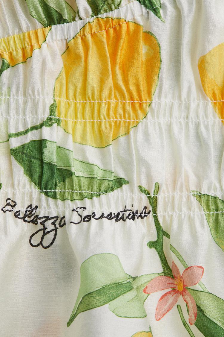 Soft cotton fabric and a flattering waist-length peplum silhouette define this romantic blouse. Featuring a low-cut V-neck and airy half-length balloon sleeves with elastic cuffs, it offers both comfort and style. The all-over floral print in yellow, green, and pink on a crisp white base adds a fresh, spring-summer vibe. Perfect for casual outings, brunches, and vacation days, this blouse combines a fitted waist with ruffled hem details for a feminine touch that elevates everyday wear.