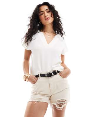 JDY V NECK SHORT SLEEVE BLOUSE IN WHITE
