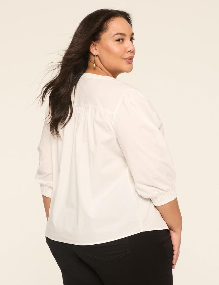 3/4-SLEEVE PINTUCK BUTTON-DOWN BLOUSE